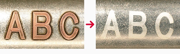For metals like iron that are not highly reflective, the fibre laser can create high contrast marks. Other lasers that have high absorption rates cannot achieve the same effect quickly.