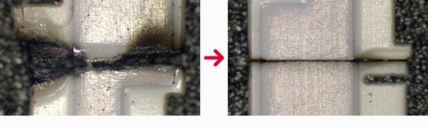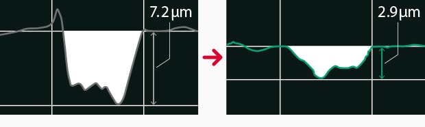 The high output of 50 W not only marks fast, but it can engrave deeply. The output's high heat digs deep into materials. With the deep engraving control of the MD-F, the focal distance varies for each laser pass. Because of this, the maximum energy density is achieved throughout the marking.