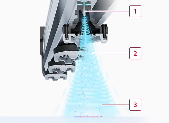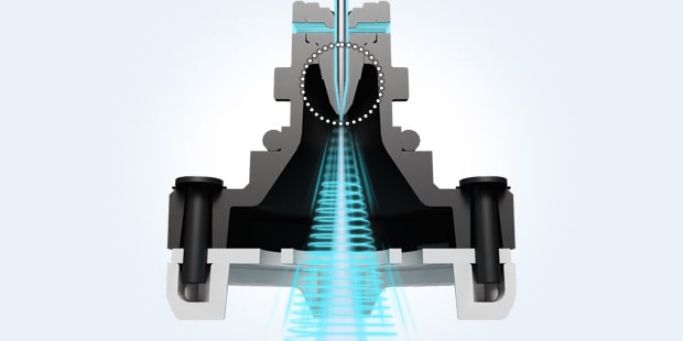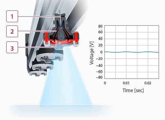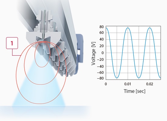 The High-Accuracy High-Speed Sensing Ionizer SJ-Q Series provides 10 times the static elimination performance of conventional models (ion balance: ±3 V, static elimination speed: 0.1 s). This greatly reduces conventional static eliminator problems: risks as well as time and effort related to electrode probe cleaning and wear. This product provides completely maintenance-free reliable static elimination. Conventional electrode probes must be replaced every 1 to 2 years, but with this product they do not need to be replaced for 10 years. The electrode probe cleaning that had to be performed every 2 to 4 weeks also only needs to be performed once a year. The result is a major decrease in ionizer running costs. The world’s first Inside Supersonic structure will change the way you think about static electricity countermeasures.