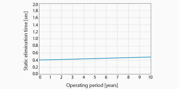 • Reduce static as quickly as possible with a static elimination speed of 0.1 sec