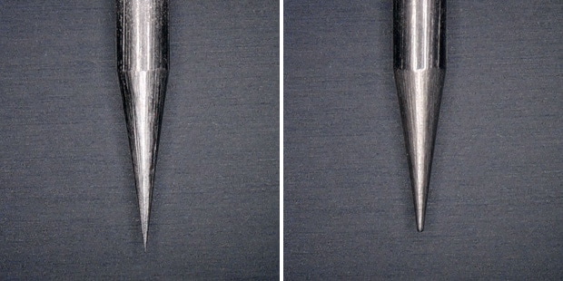Right: Worn electrode probe
