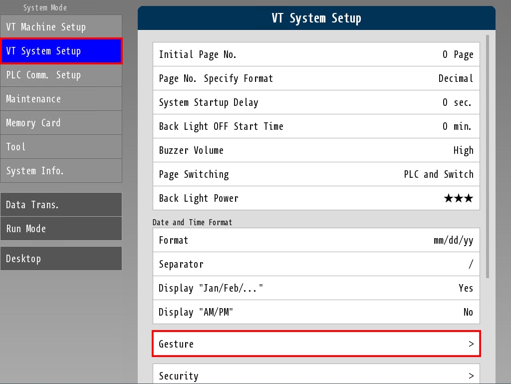 After changing the settings, tap [VT System Setup] in the upper-left corner.
