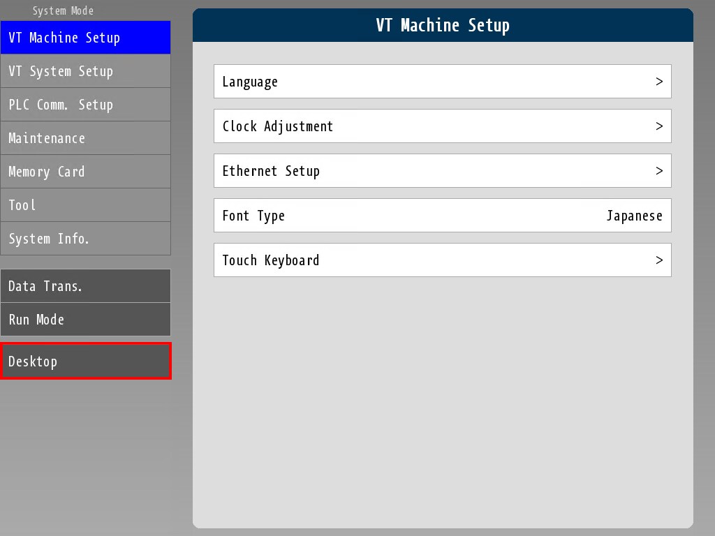 To return to the operation screen of the touch panel, click “VT App” to maximize this application.