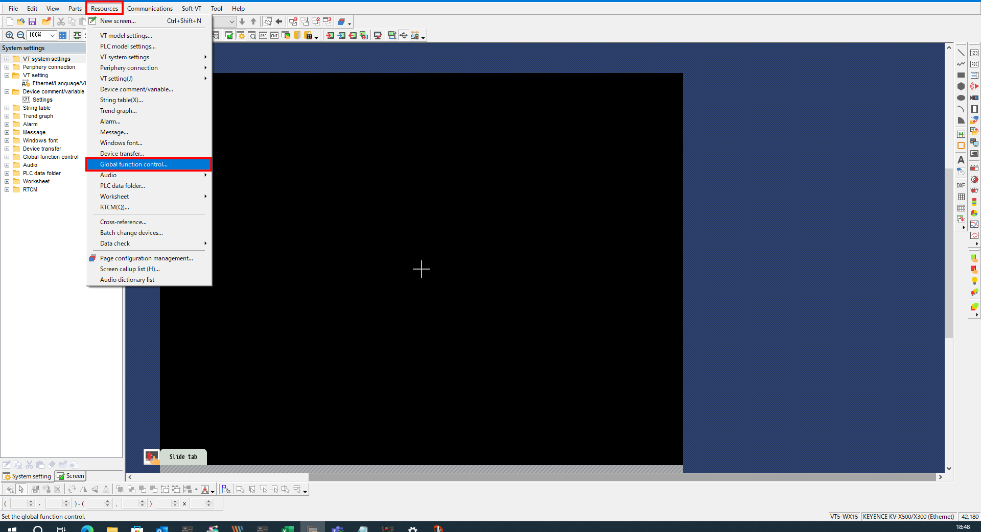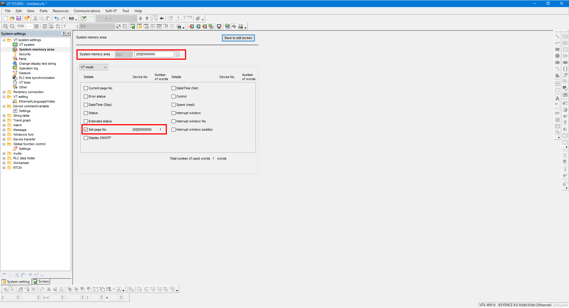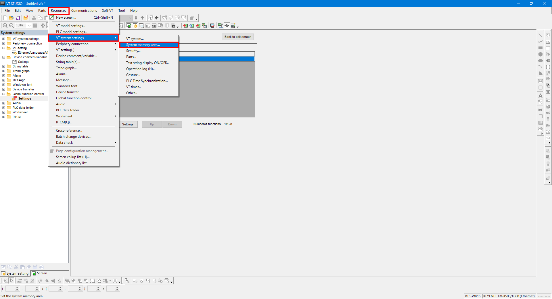 1. From the menu, select [Resources] -> [VT system settings] -> [System memory area].