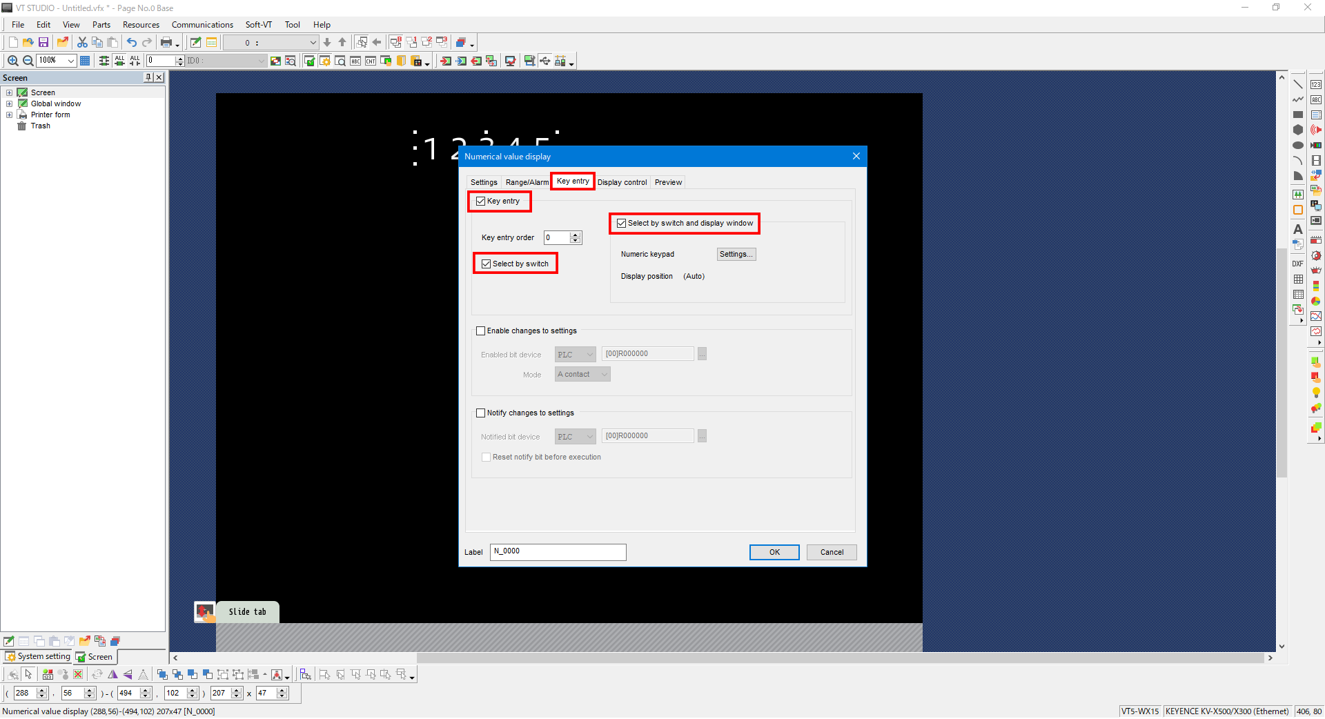 2. Open the value display part settings, and then configure the settings on the “Key entry” tab as follows.