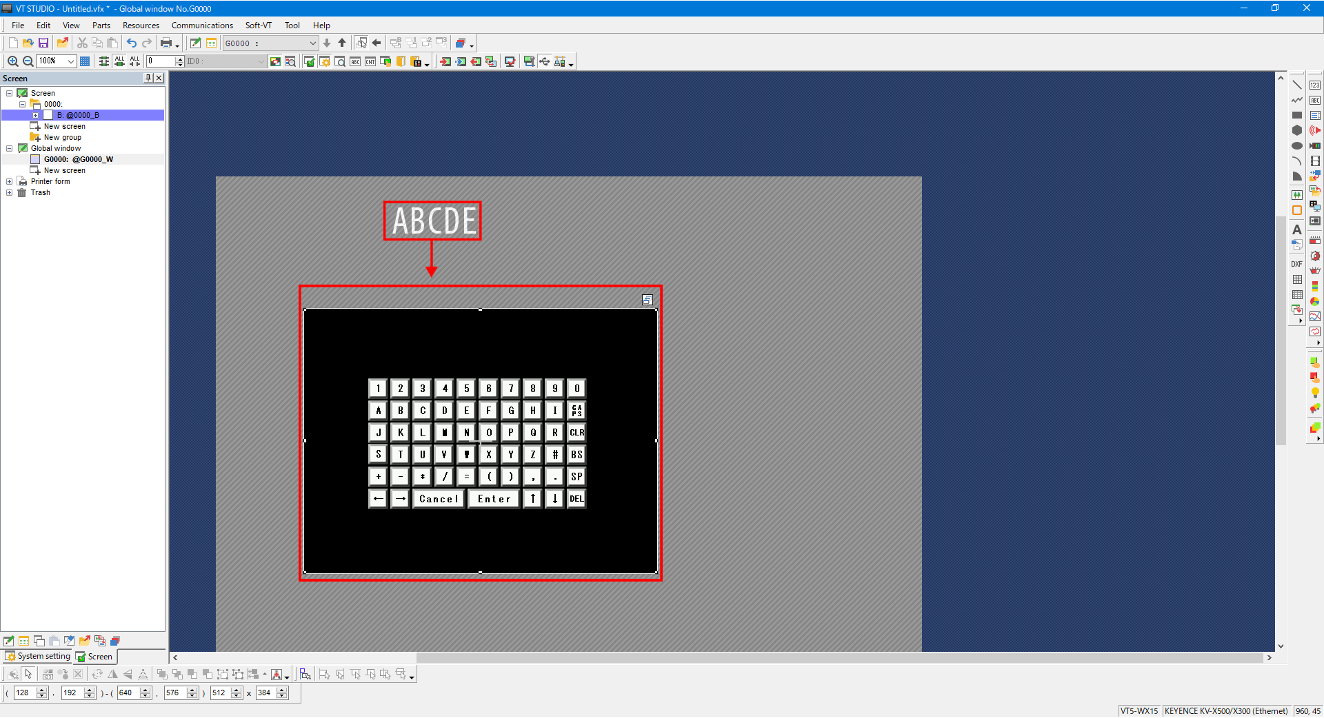 7. Specify the window number of the global window in which a keyboard for entering text has been placed.