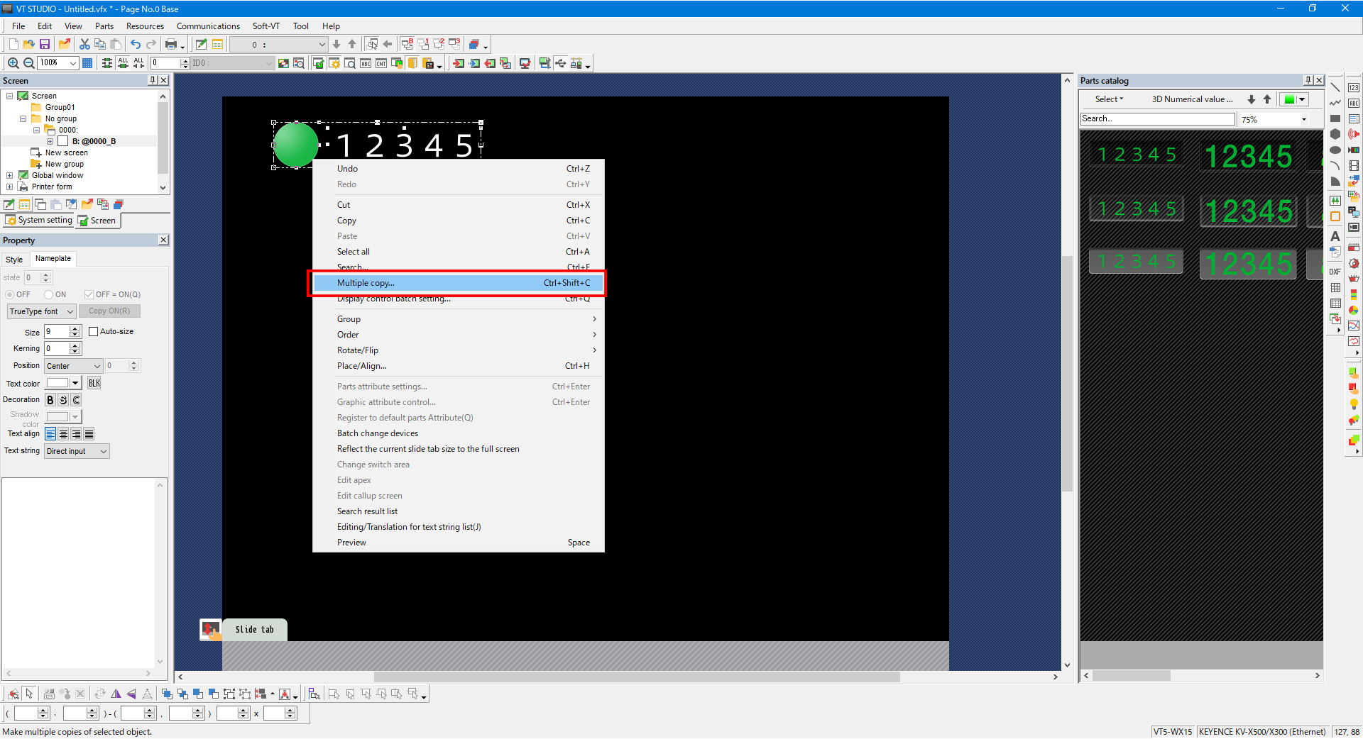 1. Right-click the part to copy, and then select [Multiple copy] from the menu that appears.