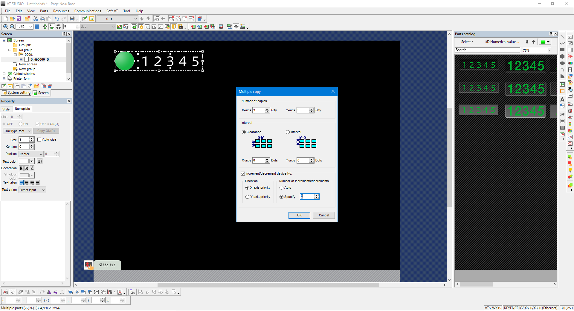 2. The [Multiple copy] dialog box appears. Set the number of copies and the offset between device numbers.