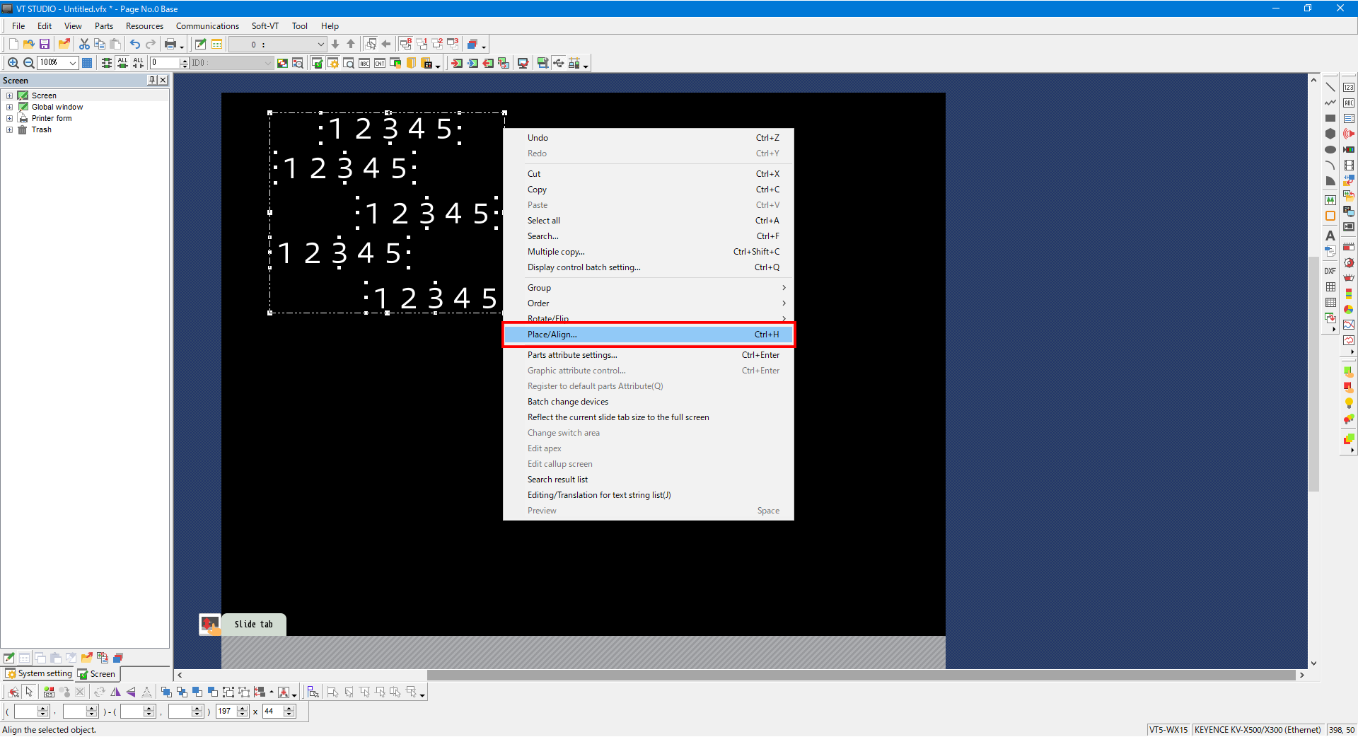 1. Select all the parts to align, right-click them, and then select [Place/Align] from the menu that appears.