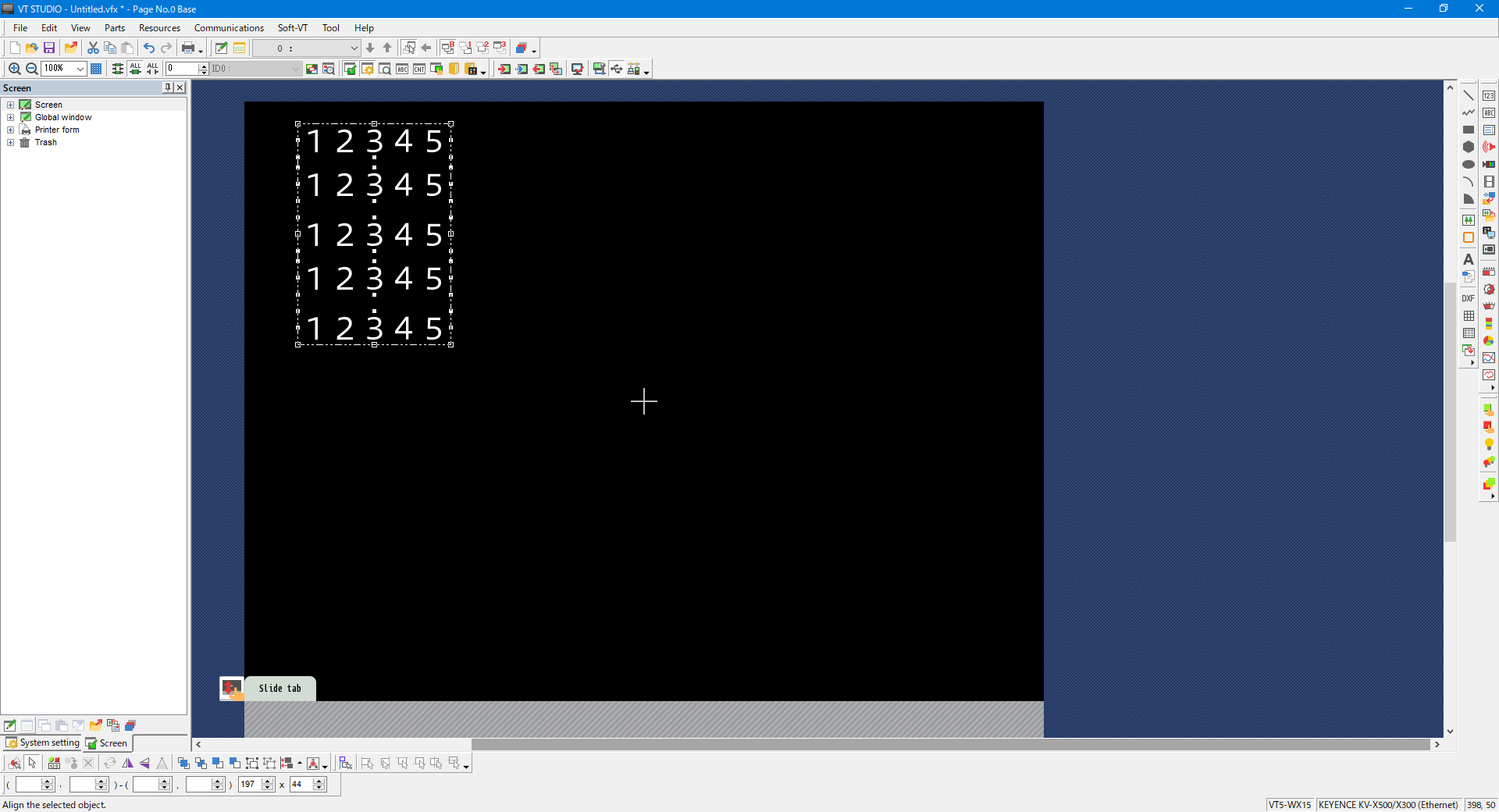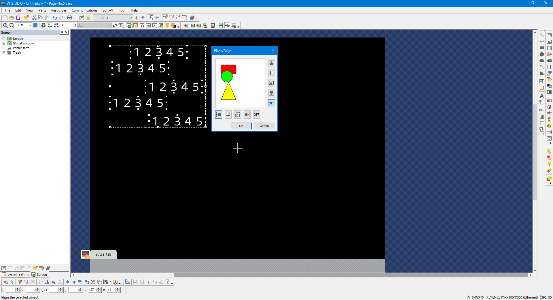 2. Specify the parts to justify, and then click [OK]. The example settings in the following figure are for left-justification followed by top/bottom alignment.