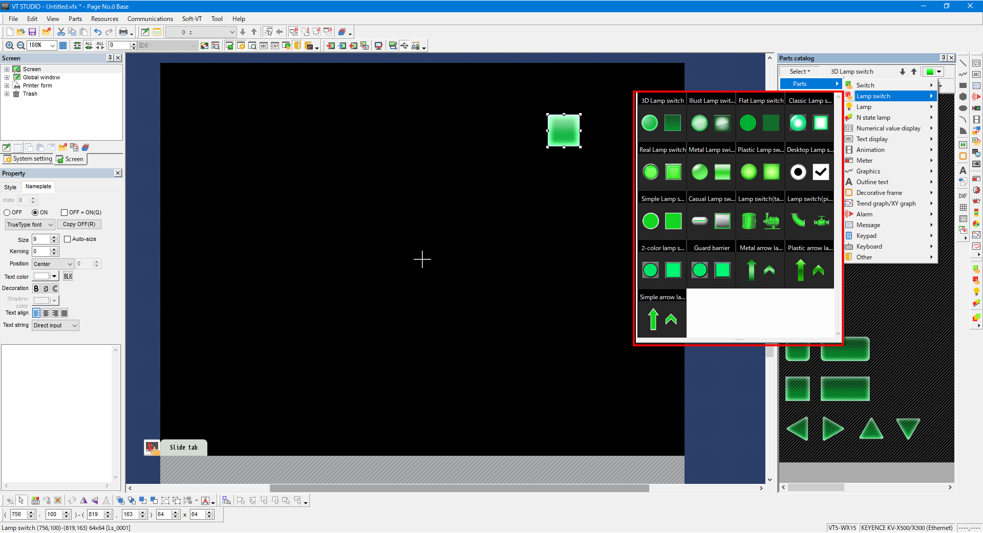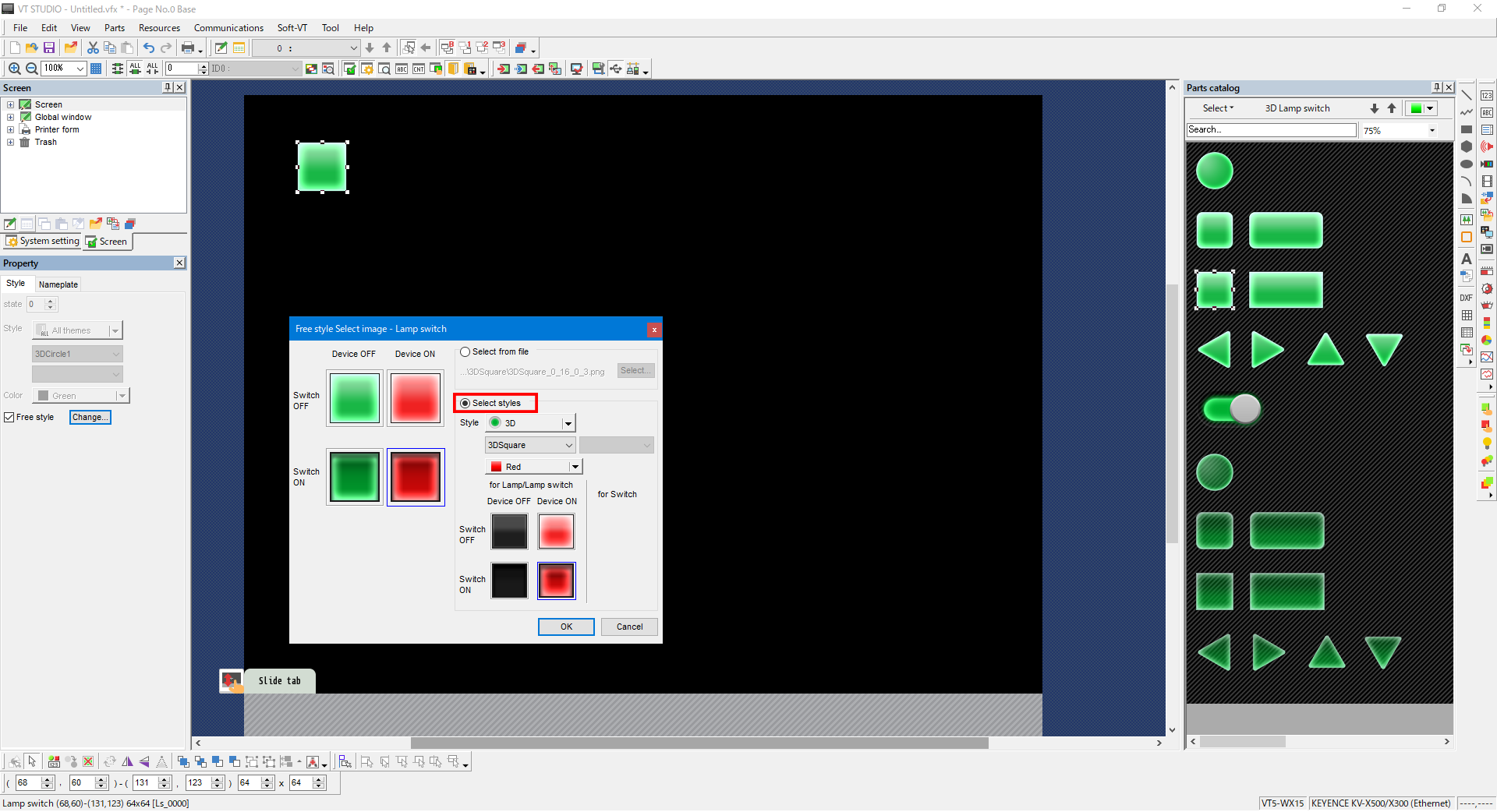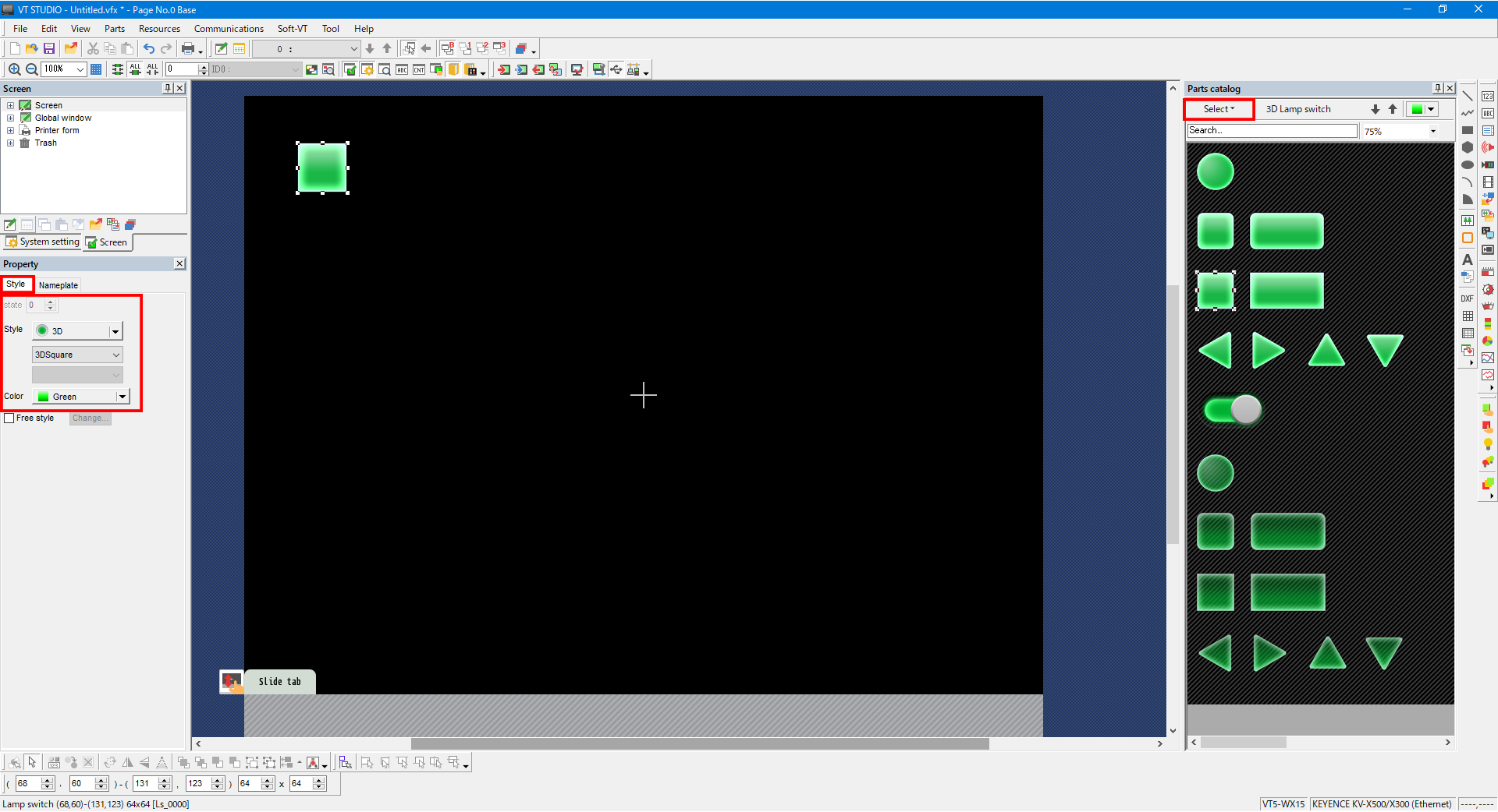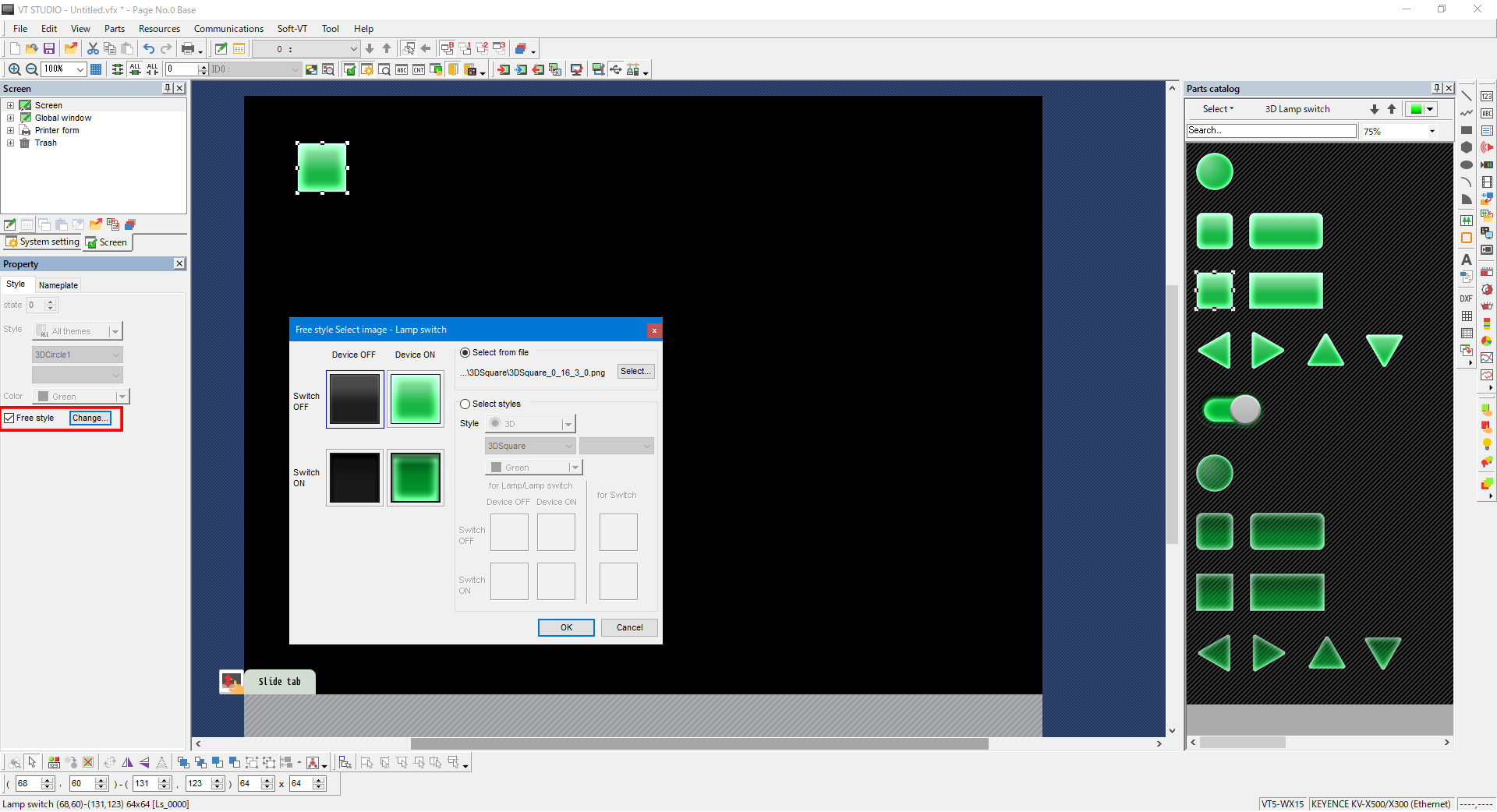 1. In the part catalog, select [Select] -> [Parts] -> [Lamp switch], and then select the appearance to change.