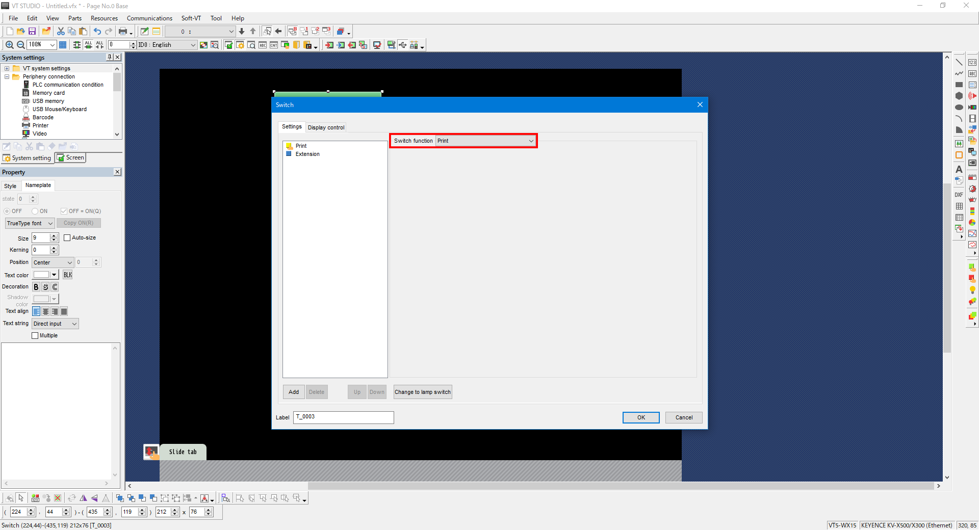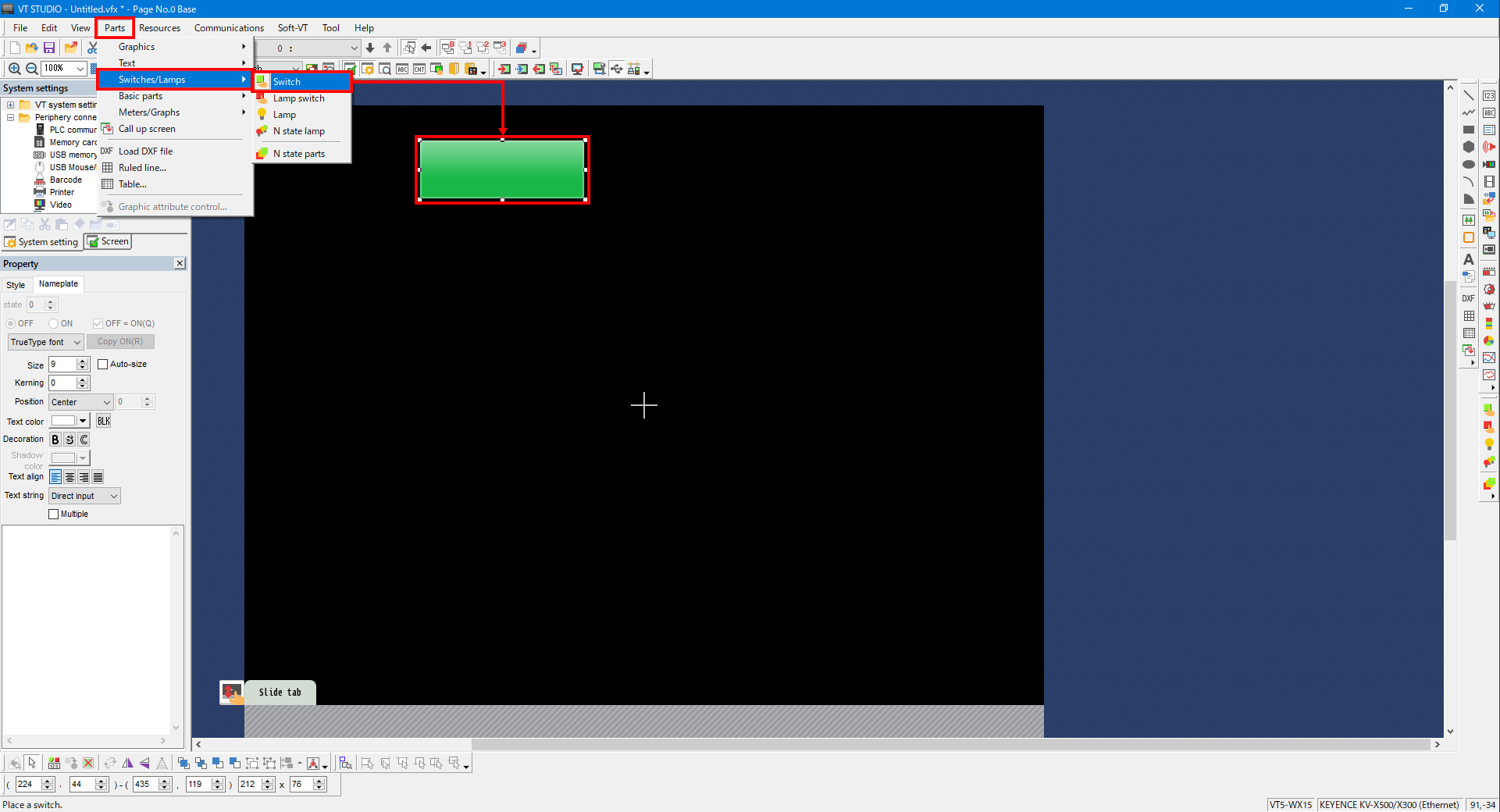 3. From the menu, select [Parts] -> [Switches/Lamps] -> [Switch], and then place the switch to use in saving the screen capture.